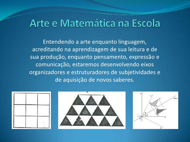ARTE e MATEMÁTICA - criatividade, beleza, universalidade, simetria, dinamismo, são qualidades que frequentemente usamos quando nos referimos quer à Arte quer à Matemática. Um pintor faz padrões com formas e cores, um poeta com palavras e o matemático com ideias. Todos os padrões devem ser belos.